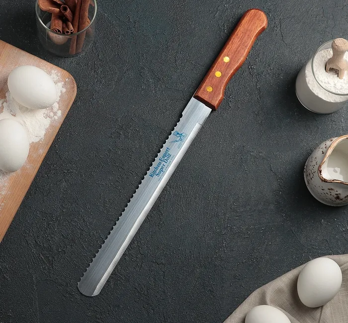 Нож для бисквита двусторонний, край ровный /крупные зубцы, 25 см